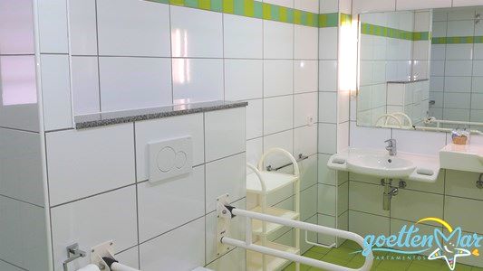 You will be able to get right to the apartment, which is located on the ground floor. The entire apartment layout, was specifically designed for guests with special needs, who might require the use of a wheelchair, The bathroom, as well as the toilet, are accordingly equipped to offer all the comfort for a pleasurable vacation stay with us.
